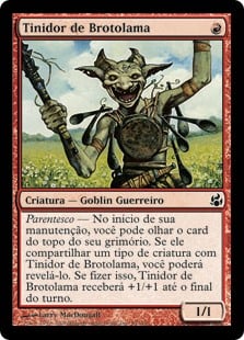 | Rules | Kinship — At the beginning of your upkeep, you may look at the top card of your library. If it shares a creature type with Mudbutton Clanger, you may reveal it. If you do, Mudbutton Clanger gets +1/+1 until end of turn. |