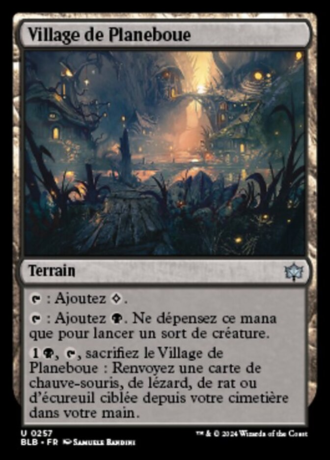 | Rules | : Add . : Add . Spend this mana only to cast a creature spell. , , Sacrifice Mudflat Village: Return target Bat, Lizard, Rat, or Squirrel card from your graveyard to your hand. |