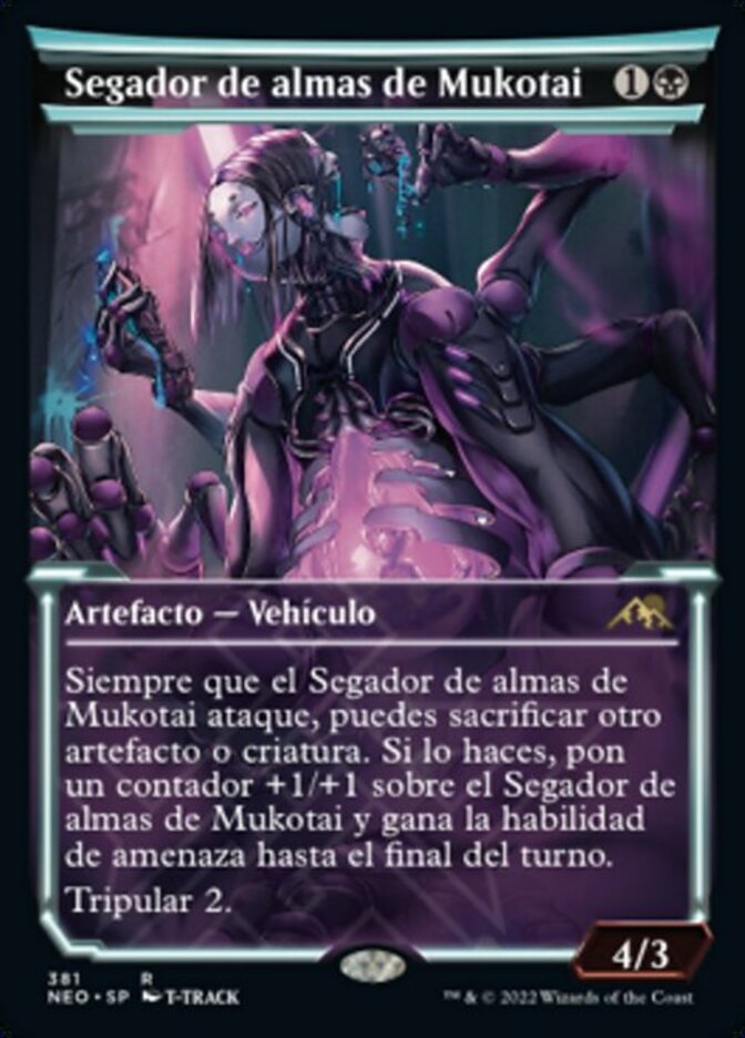 | Rules | Whenever Mukotai Soulripper attacks, you may sacrifice another artifact or creature. If you do, put a +1/+1 counter on Mukotai Soulripper and it gains menace until end of turn. Crew 2 (Tap any number of creatures you control with total power 2 or more: This Vehicle becomes an artifact creature until end of turn.) |