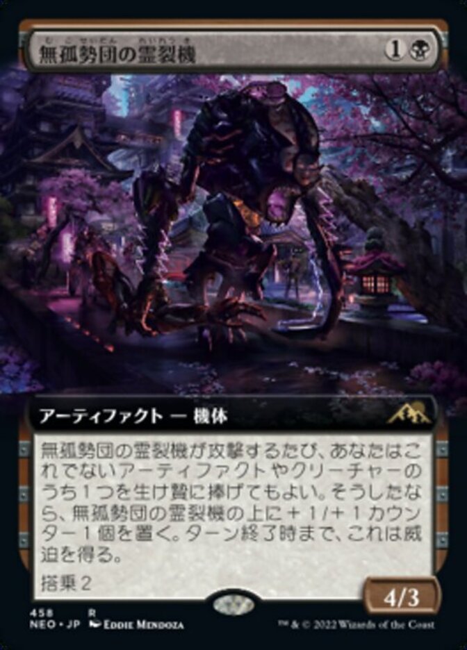 | Rules | Whenever Mukotai Soulripper attacks, you may sacrifice another artifact or creature. If you do, put a +1/+1 counter on Mukotai Soulripper and it gains menace until end of turn. Crew 2 (Tap any number of creatures you control with total power 2 or more: This Vehicle becomes an artifact creature until end of turn.) |