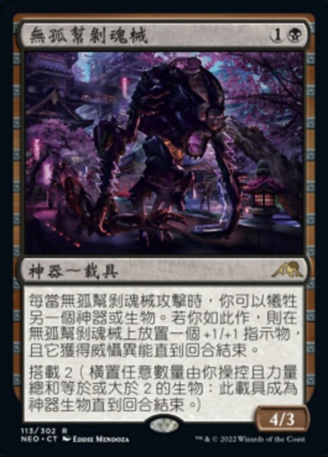 | Rules | Whenever Mukotai Soulripper attacks, you may sacrifice another artifact or creature. If you do, put a +1/+1 counter on Mukotai Soulripper and it gains menace until end of turn. Crew 2 (Tap any number of creatures you control with total power 2 or more: This Vehicle becomes an artifact creature until end of turn.) |