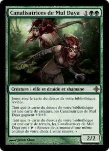 | Rules | Play with the top card of your library revealed. As long as the top card of your library is a creature card, Mul Daya Channelers gets +3/+3. As long as the top card of your library is a land card, Mul Daya Channelers has ": Add two mana of any one color." |