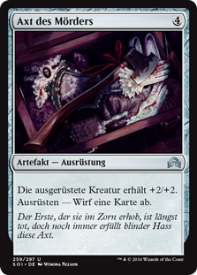 | Rules | Equipped creature gets +2/+2. Equip—Discard a card. |