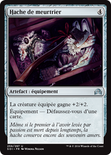 | Rules | Equipped creature gets +2/+2. Equip—Discard a card. |
