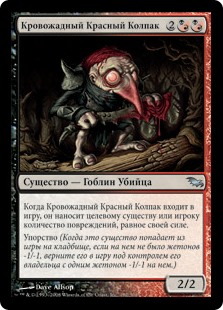 | Rules | When Murderous Redcap enters the battlefield, it deals damage equal to its power to any target. Persist (When this creature dies, if it had no -1/-1 counters on it, return it to the battlefield under its owner's control with a -1/-1 counter on it.) |