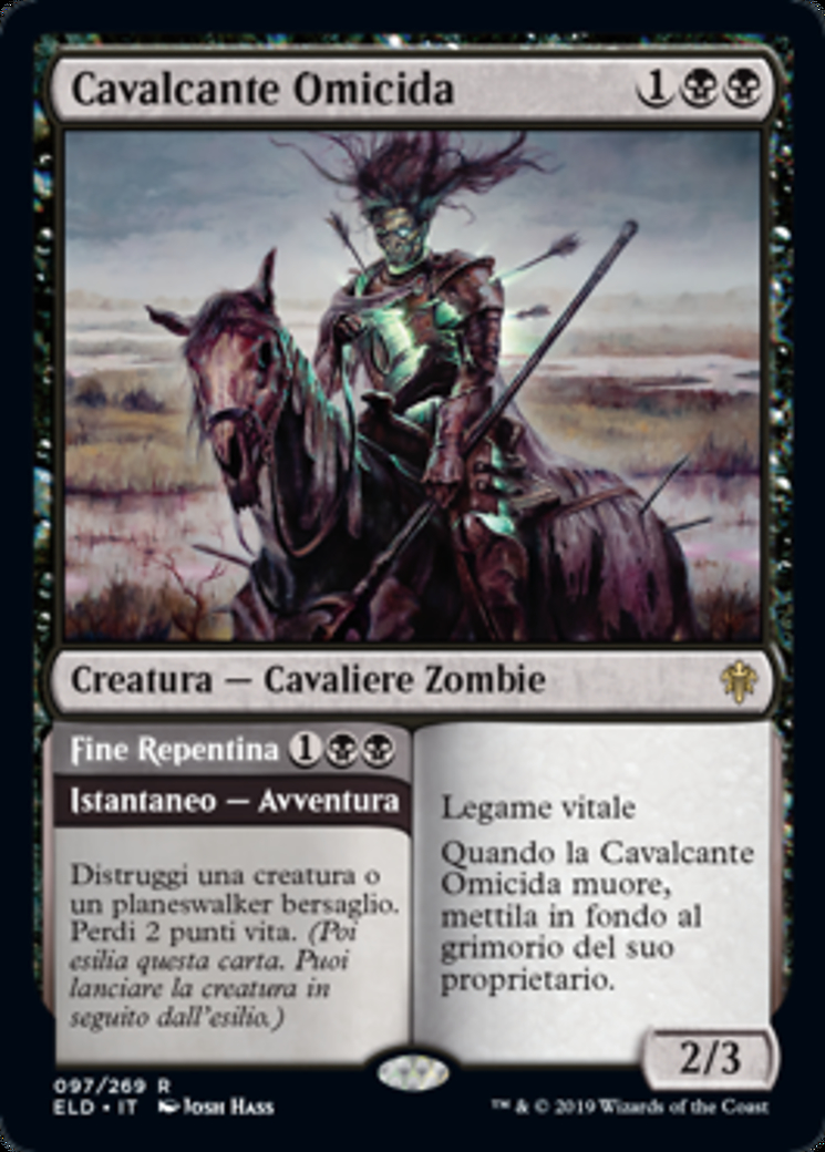 | Rules | Lifelink When Murderous Rider dies, put it on the bottom of its owner's library. // Destroy target creature or planeswalker. You lose 2 life. (Then exile this card. You may cast the creature later from exile.) |