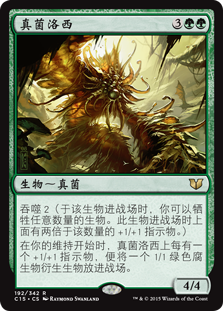 | Rules | Devour 2 (As this enters the battlefield, you may sacrifice any number of creatures. This creature enters the battlefield with twice that many +1/+1 counters on it.) At the beginning of your upkeep, create a 1/1 green Saproling creature token for each +1/+1 counter on Mycoloth. |