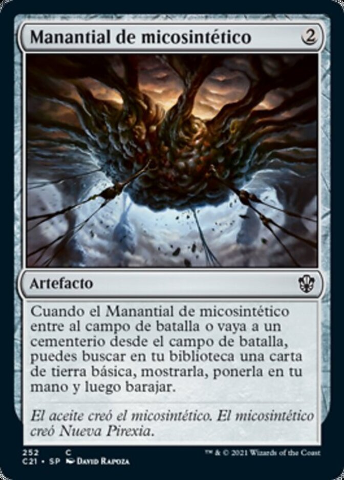 | Rules | When Mycosynth Wellspring enters the battlefield or is put into a graveyard from the battlefield, you may search your library for a basic land card, reveal it, put it into your hand, then shuffle. |