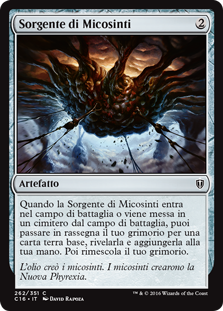 | Rules | When Mycosynth Wellspring enters the battlefield or is put into a graveyard from the battlefield, you may search your library for a basic land card, reveal it, put it into your hand, then shuffle. |