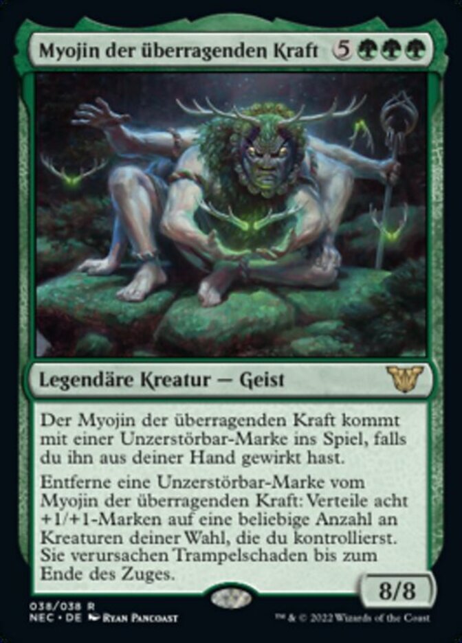 | Rules | Myojin of Towering Might enters the battlefield with an indestructible counter on it if you cast it from your hand. Remove an indestructible counter from Myojin of Towering Might: Distribute eight +1/+1 counters among any number of target creatures you control. They gain trample until end of turn. |