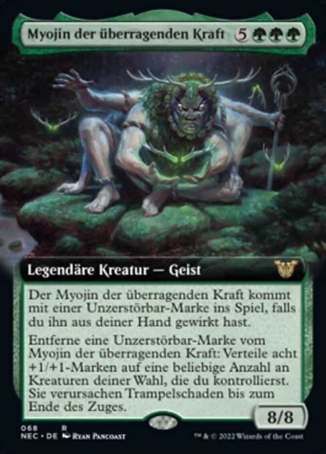 | Rules | Myojin of Towering Might enters the battlefield with an indestructible counter on it if you cast it from your hand. Remove an indestructible counter from Myojin of Towering Might: Distribute eight +1/+1 counters among any number of target creatures you control. They gain trample until end of turn. |