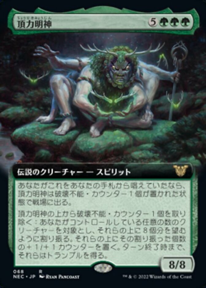 | Rules | Myojin of Towering Might enters the battlefield with an indestructible counter on it if you cast it from your hand. Remove an indestructible counter from Myojin of Towering Might: Distribute eight +1/+1 counters among any number of target creatures you control. They gain trample until end of turn. |