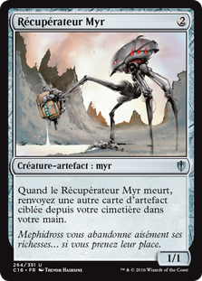 | Rules | When Myr Retriever dies, return another target artifact card from your graveyard to your hand. |