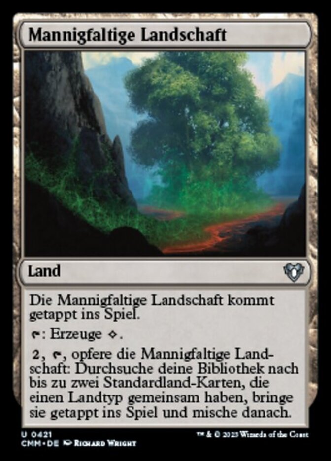 | Rules | Myriad Landscape enters the battlefield tapped. : Add . , , Sacrifice Myriad Landscape: Search your library for up to two basic land cards that share a land type, put them onto the battlefield tapped, then shuffle. |