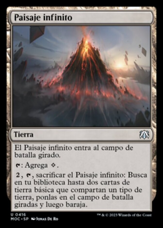 | Rules | Myriad Landscape enters the battlefield tapped. : Add . , , Sacrifice Myriad Landscape: Search your library for up to two basic land cards that share a land type, put them onto the battlefield tapped, then shuffle. |
