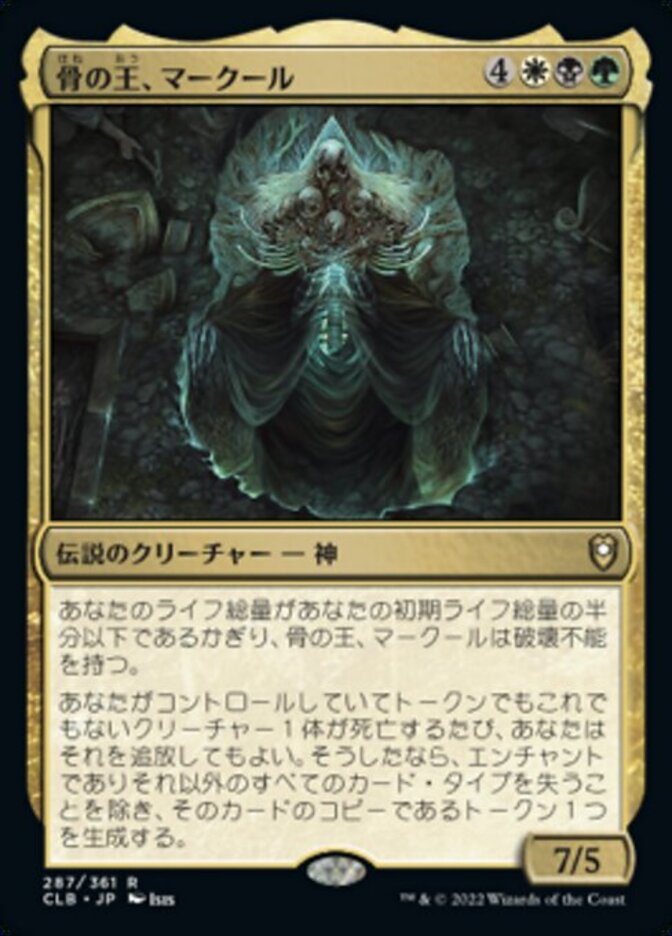 | Rules | As long as your life total is less than or equal to half your starting life total, Myrkul, Lord of Bones has indestructible. Whenever another nontoken creature you control dies, you may exile it. If you do, create a token that's a copy of that card, except it's an enchantment and loses all other card types. |