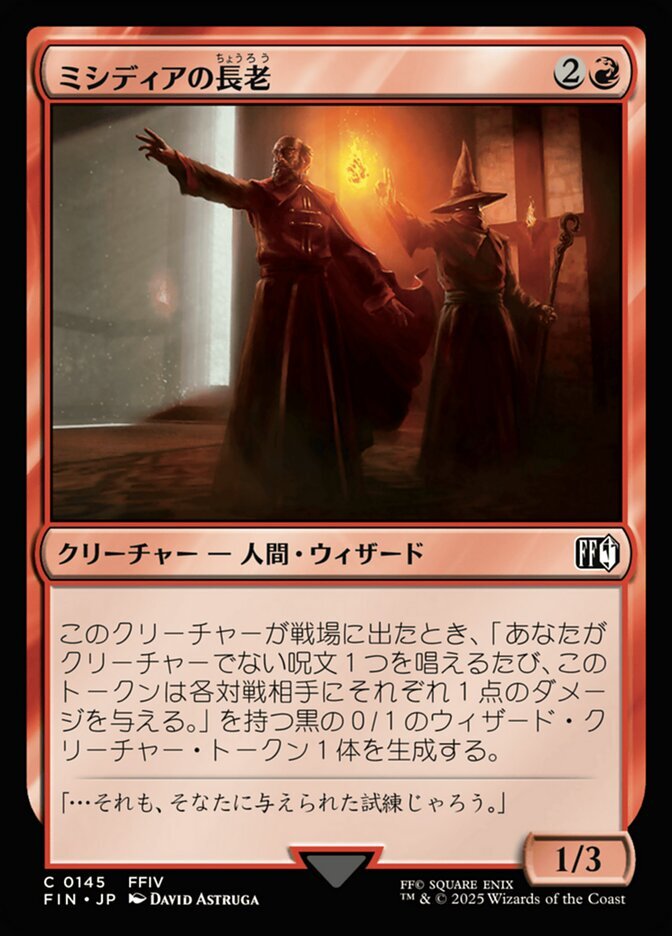 | Rules | When this creature enters, create a 0/1 black Wizard creature token with "Whenever you cast a noncreature spell, this token deals 1 damage to each opponent." |