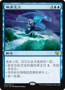 | Rules | Choose three. You may choose the same mode more than once. • Counter target spell unless its controller pays . • Return target creature to its owner's hand. • Draw a card. |