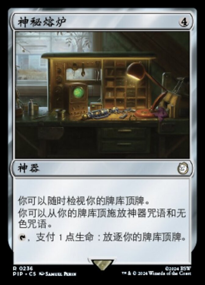 | Rules | You may look at the top card of your library any time. You may cast artifact spells and colorless spells from the top of your library. , Pay 1 life: Exile the top card of your library. |