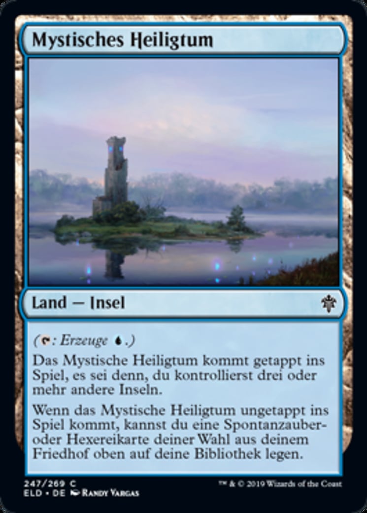 | Rules | (: Add .) Mystic Sanctuary enters the battlefield tapped unless you control three or more other Islands. When Mystic Sanctuary enters the battlefield untapped, you may put target instant or sorcery card from your graveyard on top of your library. |