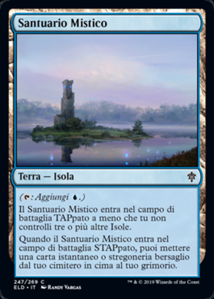 | Rules | (: Add .) Mystic Sanctuary enters the battlefield tapped unless you control three or more other Islands. When Mystic Sanctuary enters the battlefield untapped, you may put target instant or sorcery card from your graveyard on top of your library. |