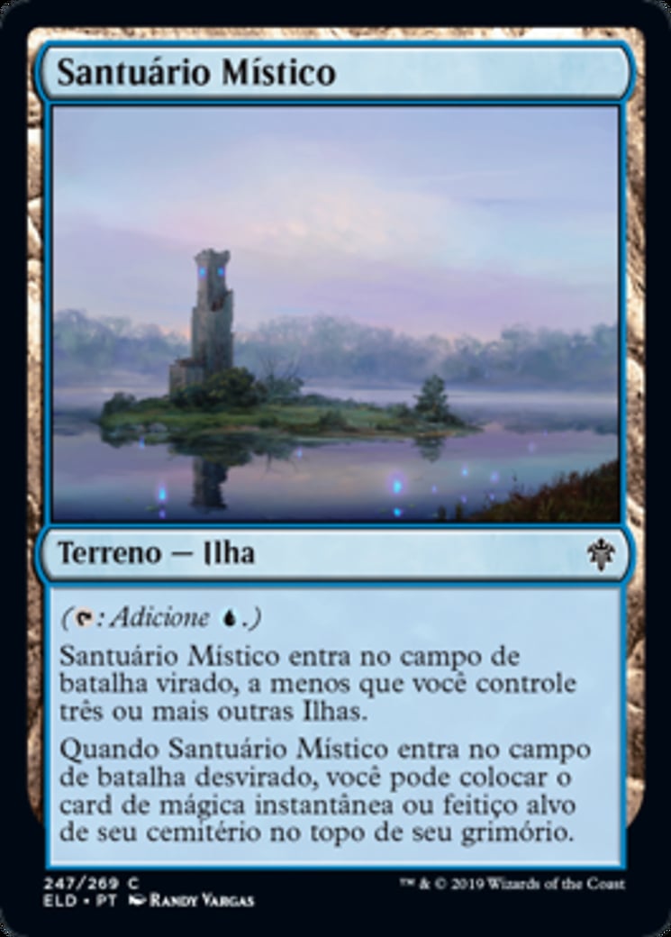 | Rules | (: Add .) Mystic Sanctuary enters the battlefield tapped unless you control three or more other Islands. When Mystic Sanctuary enters the battlefield untapped, you may put target instant or sorcery card from your graveyard on top of your library. |