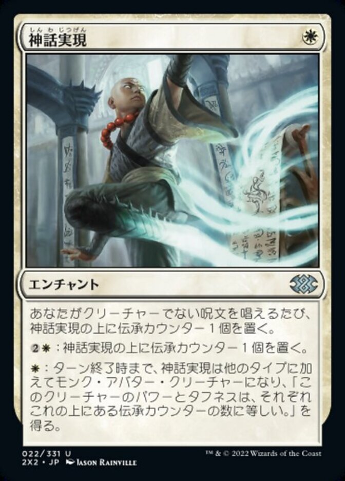 | Rules | Whenever you cast a noncreature spell, put a lore counter on Myth Realized. : Put a lore counter on Myth Realized. : Until end of turn, Myth Realized becomes a Monk Avatar creature in addition to its other types and gains "This creature's power and toughness are each equal to the number of lore counters on it." |