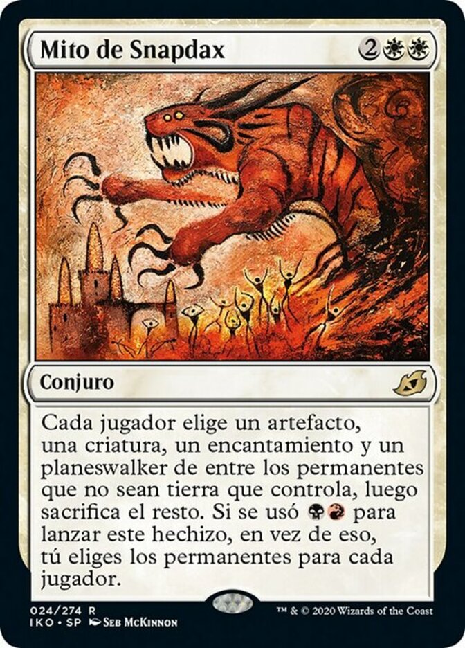 | Rules | Each player chooses an artifact, a creature, an enchantment, and a planeswalker from among the nonland permanents they control, then sacrifices the rest. If was spent to cast this spell, you choose the permanents for each player instead. |