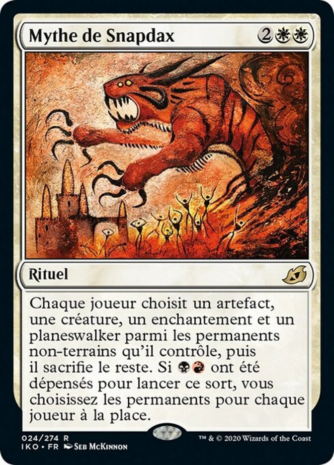 | Rules | Each player chooses an artifact, a creature, an enchantment, and a planeswalker from among the nonland permanents they control, then sacrifices the rest. If was spent to cast this spell, you choose the permanents for each player instead. |