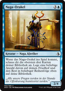 | Rules | When Naga Oracle enters the battlefield, look at the top three cards of your library. Put any number of them into your graveyard and the rest back on top of your library in any order. |