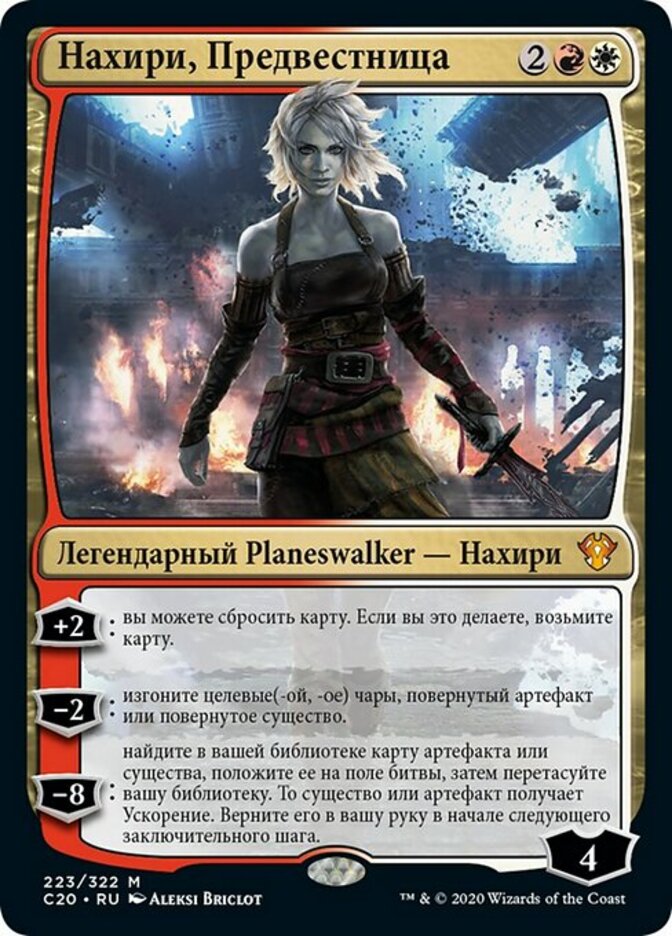 | Rules | +2: You may discard a card. If you do, draw a card. −2: Exile target enchantment, tapped artifact, or tapped creature. −8: Search your library for an artifact or creature card, put it onto the battlefield, then shuffle. It gains haste. Return it to your hand at the beginning of the next end step. |