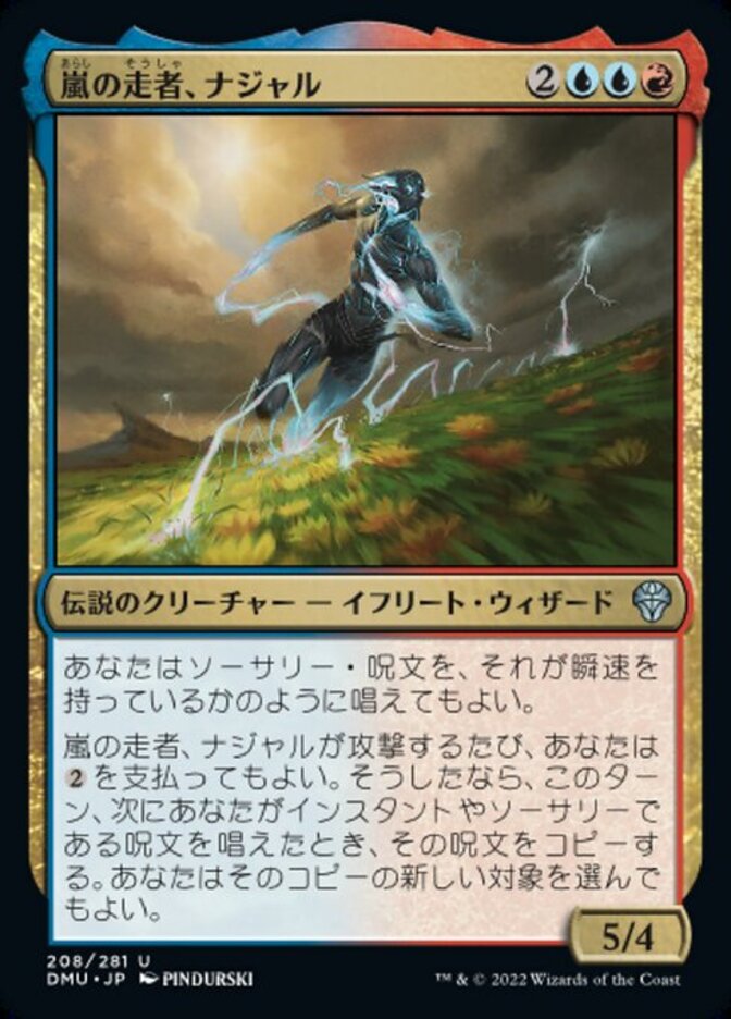 | Rules | You may cast sorcery spells as though they had flash. Whenever Najal, the Storm Runner attacks, you may pay . If you do, when you cast your next instant or sorcery spell this turn, copy it. You may choose new targets for the copy. |