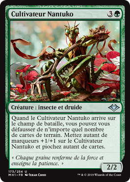 | Rules | When Nantuko Cultivator enters the battlefield, you may discard any number of land cards. Put that many +1/+1 counters on Nantuko Cultivator and draw that many cards. |