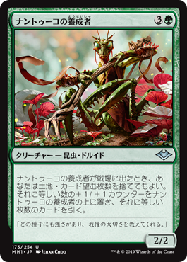 | Rules | When Nantuko Cultivator enters the battlefield, you may discard any number of land cards. Put that many +1/+1 counters on Nantuko Cultivator and draw that many cards. |