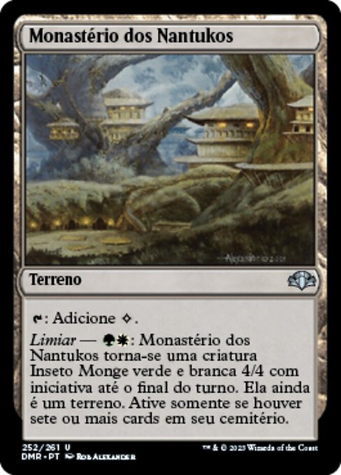 | Rules | : Add . Threshold — : Nantuko Monastery becomes a 4/4 green and white Insect Monk creature with first strike until end of turn. It's still a land. Activate only if seven or more cards are in your graveyard. |