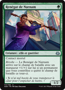 | Rules | Deathtouch Revolt — Narnam Renegade enters the battlefield with a +1/+1 counter on it if a permanent you controlled left the battlefield this turn. |