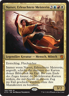 | Rules | First strike, hexproof Whenever Narset, Enlightened Master attacks, exile the top four cards of your library. Until end of turn, you may cast noncreature spells from among those cards without paying their mana costs. |