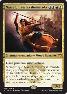 | Rules | First strike, hexproof Whenever Narset, Enlightened Master attacks, exile the top four cards of your library. Until end of turn, you may cast noncreature spells from among those cards without paying their mana costs. |