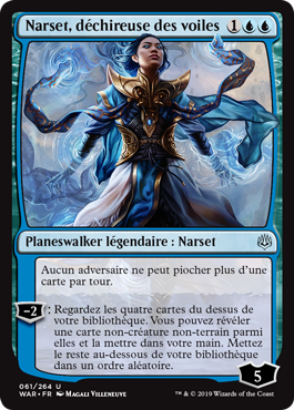 | Rules | Each opponent can't draw more than one card each turn. −2: Look at the top four cards of your library. You may reveal a noncreature, nonland card from among them and put it into your hand. Put the rest on the bottom of your library in a random order. |