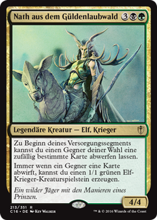 | Rules | At the beginning of your upkeep, you may have target opponent discard a card at random. Whenever an opponent discards a card, you may create a 1/1 green Elf Warrior creature token. |