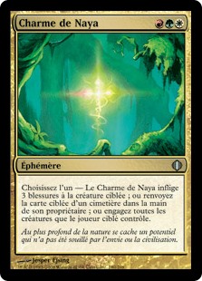 | Rules | Choose one — • Naya Charm deals 3 damage to target creature. • Return target card from a graveyard to its owner's hand. • Tap all creatures target player controls. |