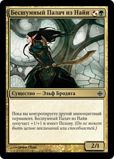 | Rules | As long as you control another multicolored permanent, Naya Hushblade gets +1/+1 and has shroud. (It can't be the target of spells or abilities.) |