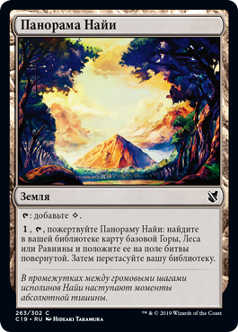 | Rules | : Add . , , Sacrifice Naya Panorama: Search your library for a basic Mountain, Forest, or Plains card, put it onto the battlefield tapped, then shuffle. |