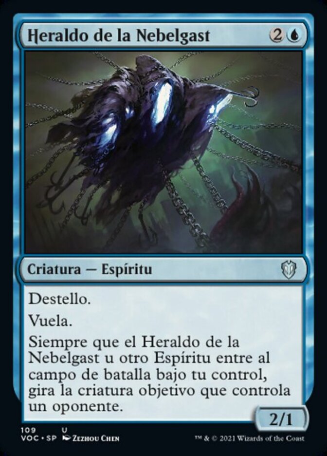 | Rules | Flash (You may cast this spell any time you could cast an instant.) Flying Whenever Nebelgast Herald or another Spirit enters the battlefield under your control, tap target creature an opponent controls. |