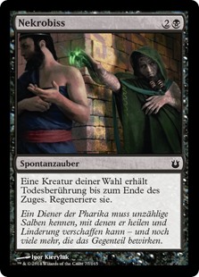 | Rules | Target creature gains deathtouch until end of turn. Regenerate it. (The next time that creature would be destroyed this turn, it isn't. Instead tap it, remove all damage from it, and remove it from combat. Any amount of damage a creature with deathtouch deals to a creature is enough to destroy it.) |