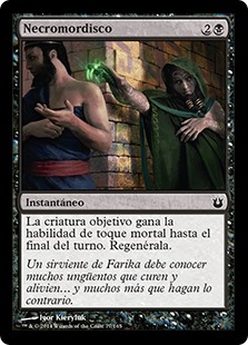 | Rules | Target creature gains deathtouch until end of turn. Regenerate it. (The next time that creature would be destroyed this turn, it isn't. Instead tap it, remove all damage from it, and remove it from combat. Any amount of damage a creature with deathtouch deals to a creature is enough to destroy it.) |