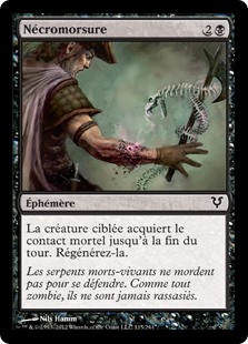 | Rules | Target creature gains deathtouch until end of turn. Regenerate it. (The next time that creature would be destroyed this turn, it isn't. Instead tap it, remove all damage from it, and remove it from combat. Any amount of damage a creature with deathtouch deals to a creature is enough to destroy it.) |