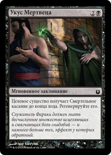 | Rules | Target creature gains deathtouch until end of turn. Regenerate it. (The next time that creature would be destroyed this turn, it isn't. Instead tap it, remove all damage from it, and remove it from combat. Any amount of damage a creature with deathtouch deals to a creature is enough to destroy it.) |