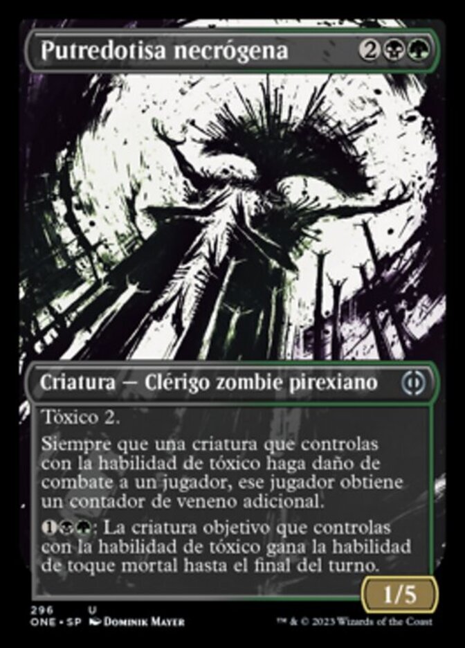 | Rules | Toxic 2 (Players dealt combat damage by this creature also get two poison counters.) Whenever a creature you control with toxic deals combat damage to a player, that player gets an additional poison counter. : Target creature you control with toxic gains deathtouch until end of turn. |