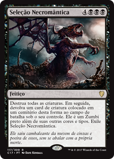 | Rules | Destroy all creatures, then return a creature card put into a graveyard this way to the battlefield under your control. It's a black Zombie in addition to its other colors and types. Exile Necromantic Selection. |